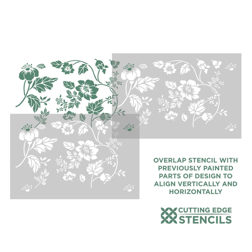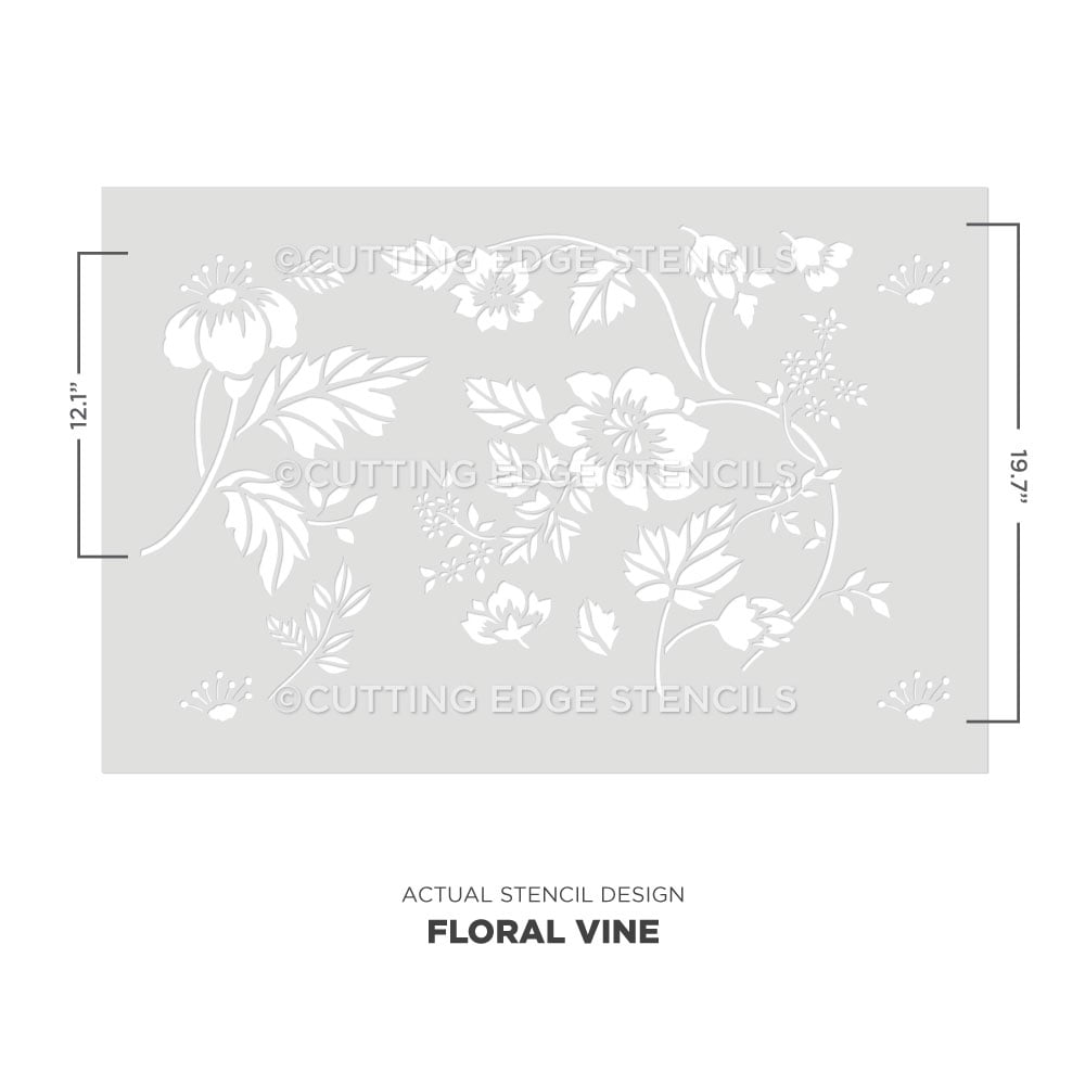 This beautiful Floral Vine wall pattern stencil features elegant vines and flowers. This lovely stencil fits all kinds of interiors and styles, it can even be used on a nursery wall. This stencil pattern can be applied to a wall with a dense foam roller or with a variety of stencil brushes. You can stencil it in one color, or try painting and shading various flowers and leaves with different paint colors. We love using craft acrylics for stenciling projects like this one.