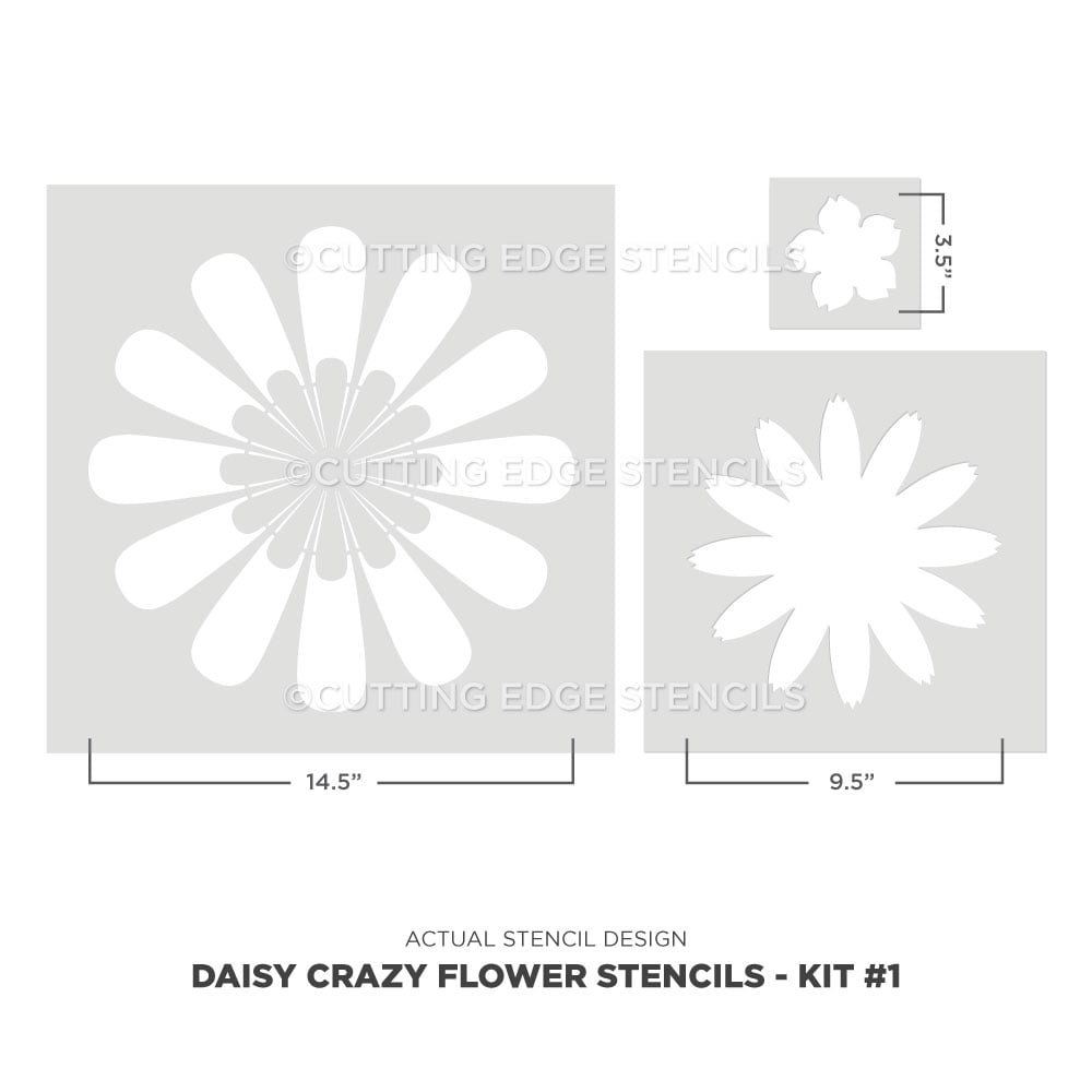 Stencil these fun Crazy Daisies on your kids room or nursery walls! These cool reusable flower stencils make stunning accents on a wall above the crib or table, above the bed or pretty much any wall space that needs a splash of color. Trendy and hip, these bold refreshingly modern wall art stencils will quickly bring color to a otherwise plain and boring wall.
