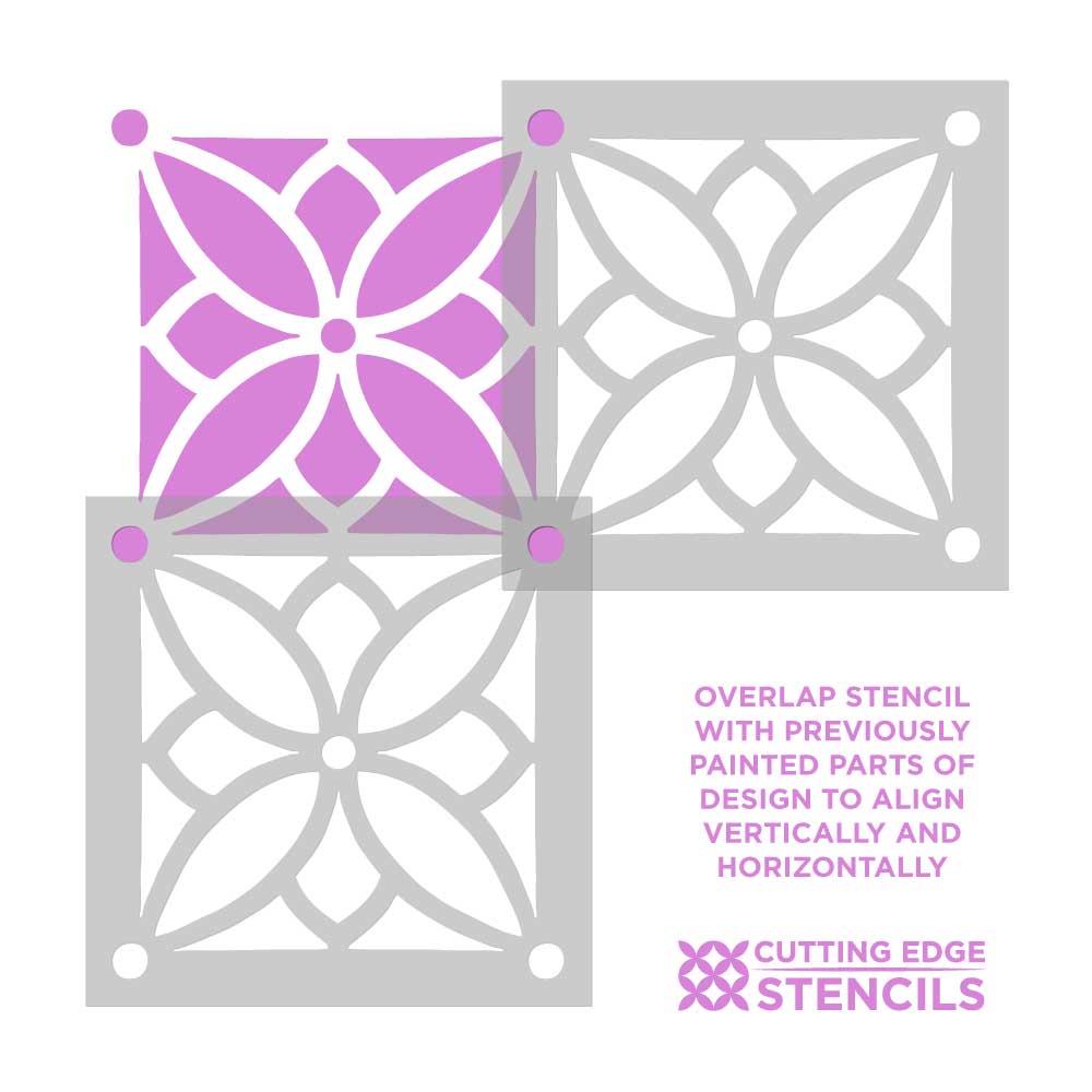 Give your old boring patio a new life with our Front Gate Patio Stencil! This tile stencil pattern looks great anywhere! It's just as at home on a floor as it is on a stylish accent wall or a cement patio. Simple floral geometric patterns work in all color combinations so don’t be afraid to get creative! Concrete patio painting is not difficult and with our large stencils the project will go fast!