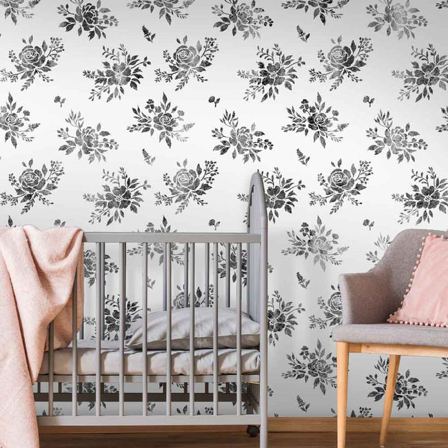 Our Garden Bouquet stencil is a perfect choice for a romantic feminine bedroom or a nursery! Florals and botanicals are everywhere and we're especially fond of large florals and watercolor flowers. Now with the help of our botanical floral stencil and some acrylic or latex paint, your walls can be transformed into a dreamy garden. Unlike pricey floral wallpaper, our reusable flower stencil offers you an opportunity to choose your own color combinations and to be creative. Try this floral wall pattern for a bedroom wall, a bath or the nursery.