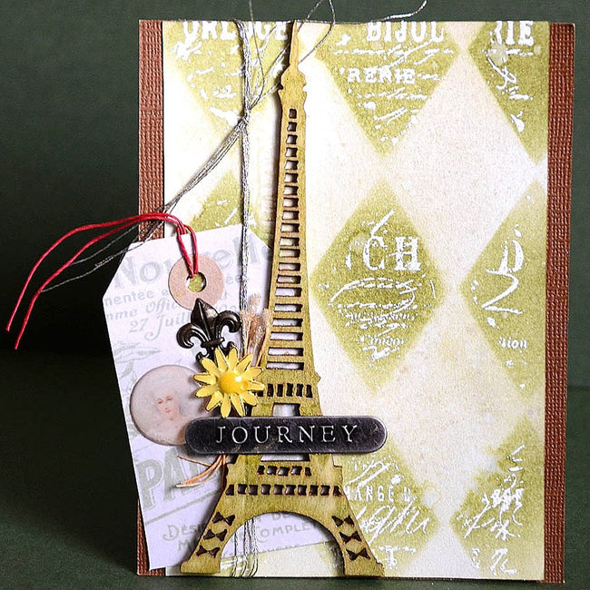 Stencils with a large open area are fantastic for stamping into the design! Just use plenty of ink, press firmly, and be careful to wash the ink off the stencil afterwards. This card features embossing ink and once the stencil was removed embossing powder was applied and heat set for raised glossy letters in the stencil design.