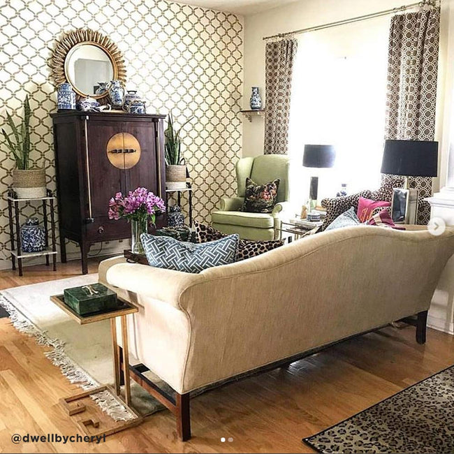 Our beautiful wall pattern "Heritage Grill" is perfect for accent walls! A little bit Moroccan, a little bit contemporary, this stencil design works beautifully on walls, curtains, floors and sisal rugs! Geometric wall stencils are super trendy and are sure to spice up any decor. Stencil wall patterns are a great money-saving alternative to wallpaper. Stenciling offers you complete customization of your space with unlimited paint choices to perfectly match your decor! A great tool for any creative DIY-er.