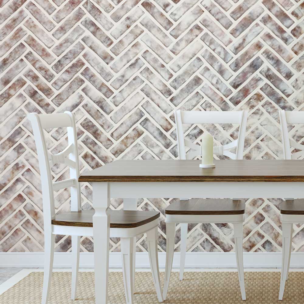 With our Herringbone Bricks stencil creating a faux brick wall is easy! This classic brick design will make a stunning accent wall in any interior! Great for rustic and contemporary rooms, just try it in different color combinations. This Herringbone Brick stencil is also works for stenciling backsplashes and floors.