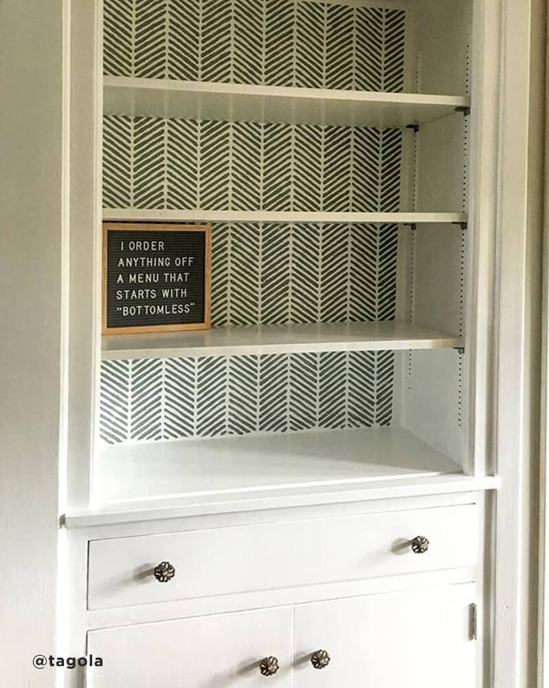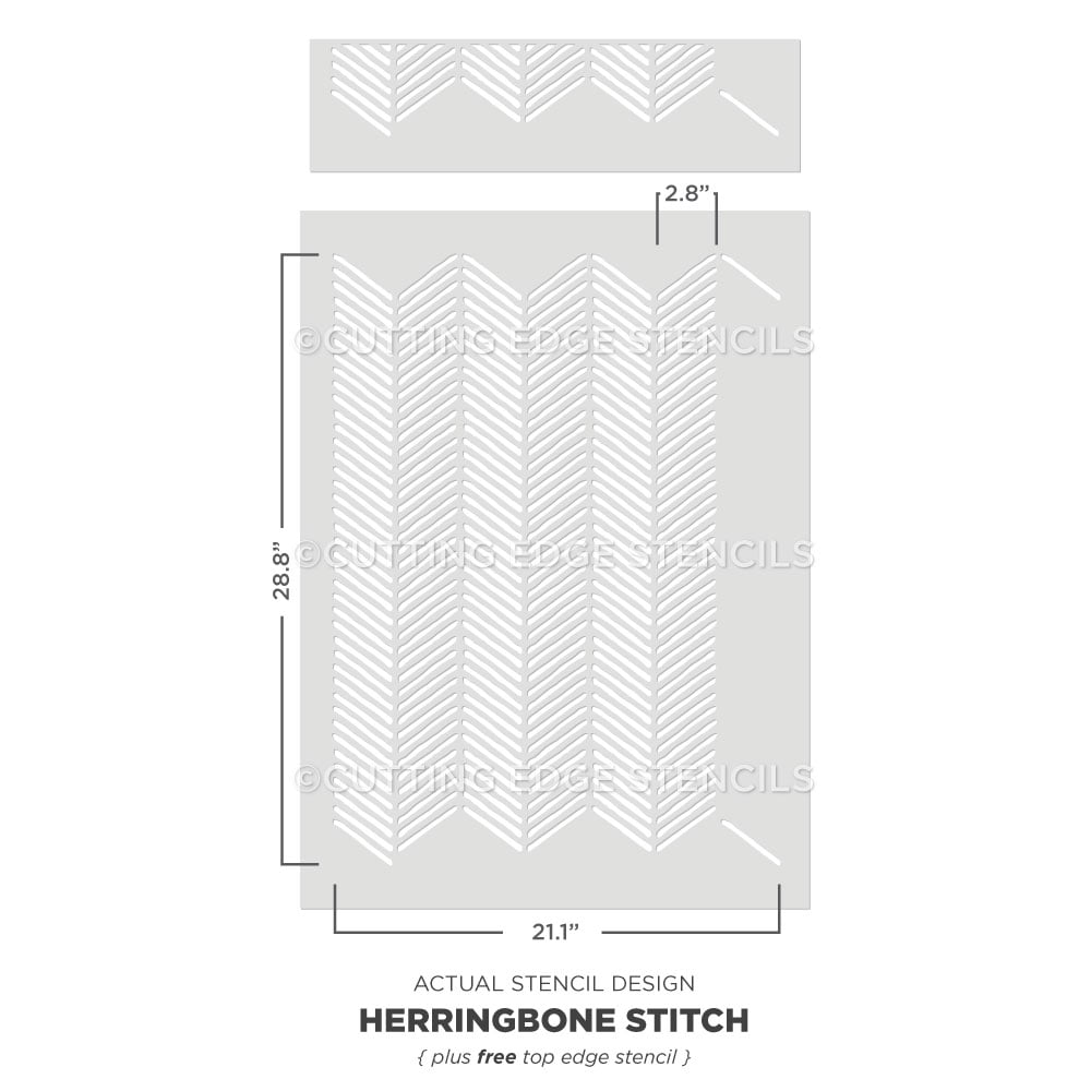 Our trendy geometric stencil pattern "Herringbone Stitch" will make a stunning accent wall in any contemporary room! It also looks great stenciled on furniture, floors and even curtains! Geometric wall stencils are super trendy and are sure to spice up any contemporary interior.