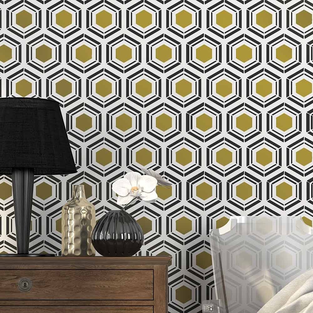 Hexagon Allover Stencil Geometric Stenciled Wall Pattern