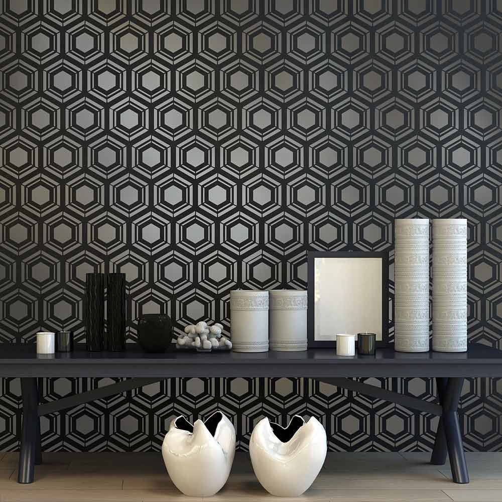 While prior stenciling experience is a plus when using wallpaper stencils, but even beginners get terrific results! This geometric design is recommended for feature/accent wall or entire room, and also works for furniture and fabric embellishment.