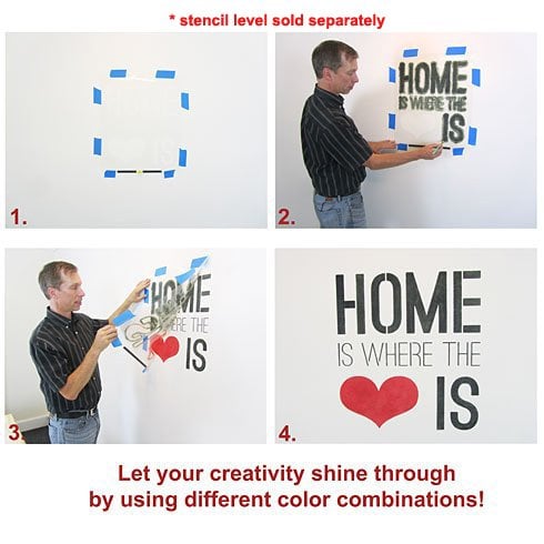 Inspiring wall phrase stencil Home Is Where The Heart Is. Our Wall Quote Stencils are a great way to brighten up your home and share an inspiring message. This beautiful quote can be stenciled on walls, pillows, fabrics, floors and furniture, or on canvas to make your own stenciled wall art. You can stencil words in different colors to make the quote even more personal and fun! very easy stenciling project perfect for beginners.