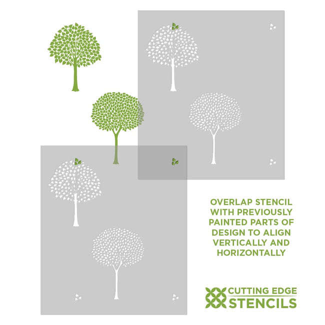 Bring the beauty of nature inside with our Homestead Trees wall stencil! This charming tree stencil will create a soothing feeling in any room. All DIYers will love how much this nature inspired tree wall stencil looks just like wallpaper, but costs less than half the price! This wall stencil pattern looks darling in a gender-neutral nursery, sun kissed kitchen nook, and even covering entire bedroom accent wall or study. Perfect stencil for a farmhouse interior. With our reusable wall stencils, you have the ability to customize your stencil pattern colors to match your décor! Use a dense foam roller to add one color to your stencil pattern for a monochromic look or add multiple colors with a professional stencil brush! This wall stencil comes with built-in registration marks for easy alignment!