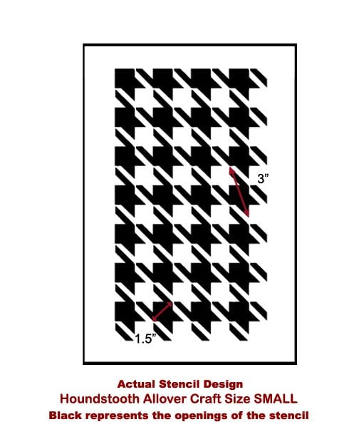 Our craft size stencil Houndstooth is perfect for smaller DIY home decor projects where a wall stencil would be too large. These trendy stencils are great for stenciling your own designer pillows, curtains, or transforming garage sale furniture finds into cool decorative pieces. However, it doesn't end there: stencil lamp shades, kitchen backsplashes, doors, table tops, picture, and mirror frames, or create your own work of art on pre-stretched canvas. Decorative possibilities are endless with these versatile reusable stencils!