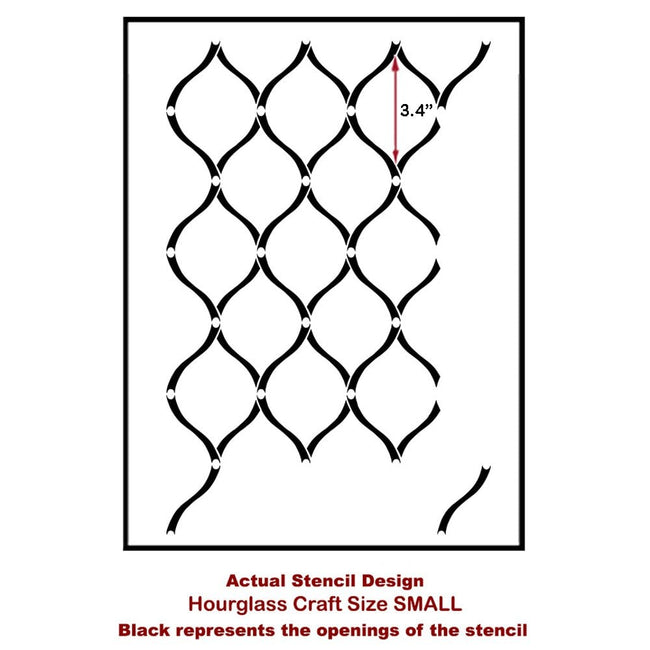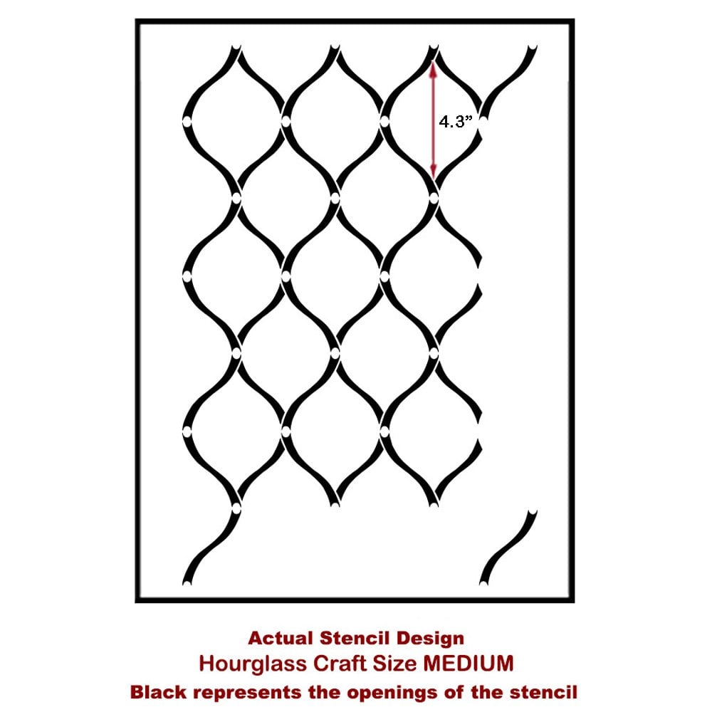 Our craft size stencil Hourglass is perfect for smaller DIY home decor projects where a wall stencil would be too large. These craft stencils are great for stenciling your own designer pillows, curtains, or transforming garage sale furniture finds into cool decorative pieces. It doesn't end there: try stenciling lamp shades, kitchen backsplashes, doors, table tops, picture and mirror frames, or create your own work of art on pre-stretched canvas. Decorative possibilities are endless with these versatile reusable stencils!