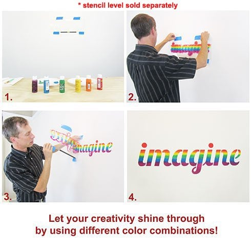 Inspiring wall phrase stencil Imagine. People say "If walls could talk"¦". Well, now they can with our new collection of inspiring phrases that can be stenciled on walls, on pillows, on fabrics, on floors, furniture, or even on canvas to make your own stenciled wall art. Our Wall Quote Stencils are the perfect way to share a beautiful message while brightening up your home.
