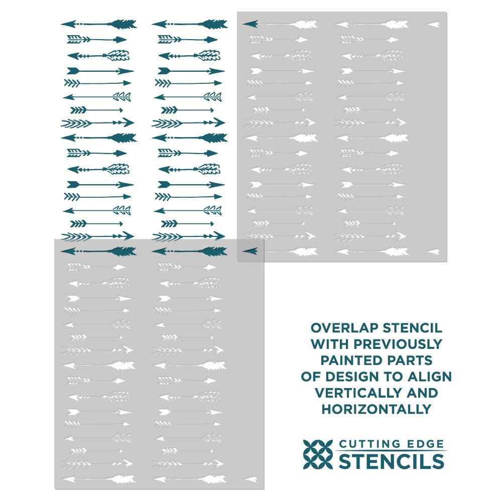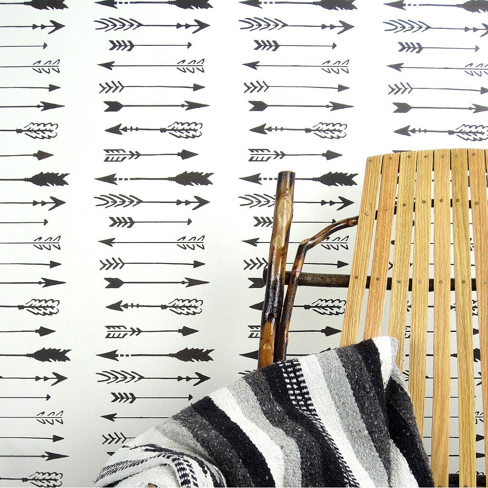 Our Indian Arrow stencil is another awesome addition to our arrow motif collection. Hand drawn and "imperfect", it reflects the primitive tribal art influences which served as an inspiration for its creation. This simple arrow stencil is at home in both for contemporary or traditional interiors. Try it in hallways, living rooms and dining rooms. It also works perfectly for the kids room or any room with a hint of South-Western decor. You can also use this design for stenciling curtains, furniture and pillows.