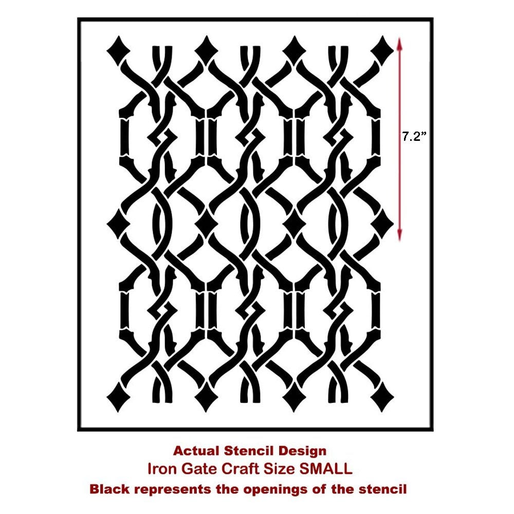 Try our elegant Iron Gate craft stencil design for your next DIY craft project! This stencil pattern looks fabulous when painted on pieces of hand-stretched canvas as a special work of art. A very sophisticated look without being stuffy. Classy and elegant, the Iron Gate stencil will add a soft, appealing trellis pattern to your home accessories including tablecloths, napkins or place mats.