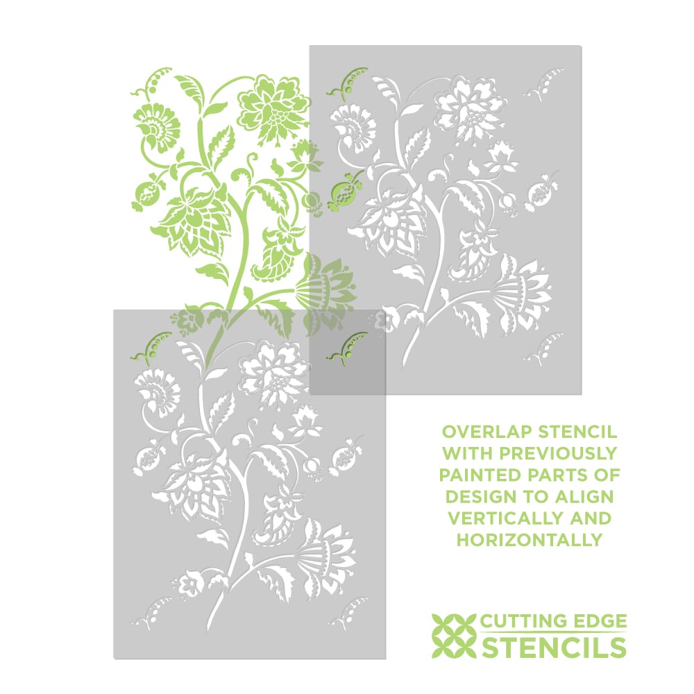 Want to learn how to stencil a damask or allover pattern? Here are the detailed illustrated step-by-step Damask/Allover Stenciling Tips.