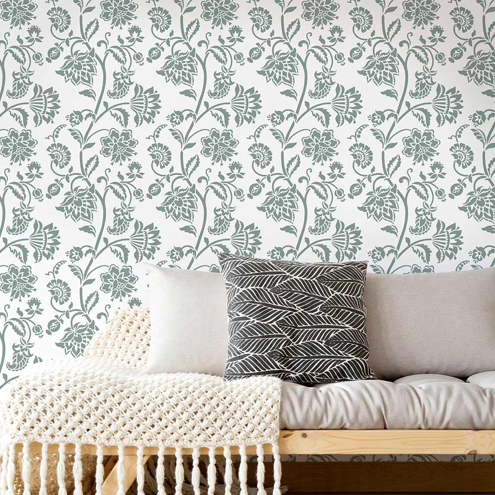 Our Jacobean Wall Stencil is our take on a timeless classic pattern that never goes out of style! This floral vine stencil features stylized fruits and flowers, growing along elegant vines. This is a perfect wall pattern for bedrooms, kitchens and even nurseries. Try stenciling it in back over white for a striking classy look, or get creative with your stencil brushes and fill it with multiple colors!