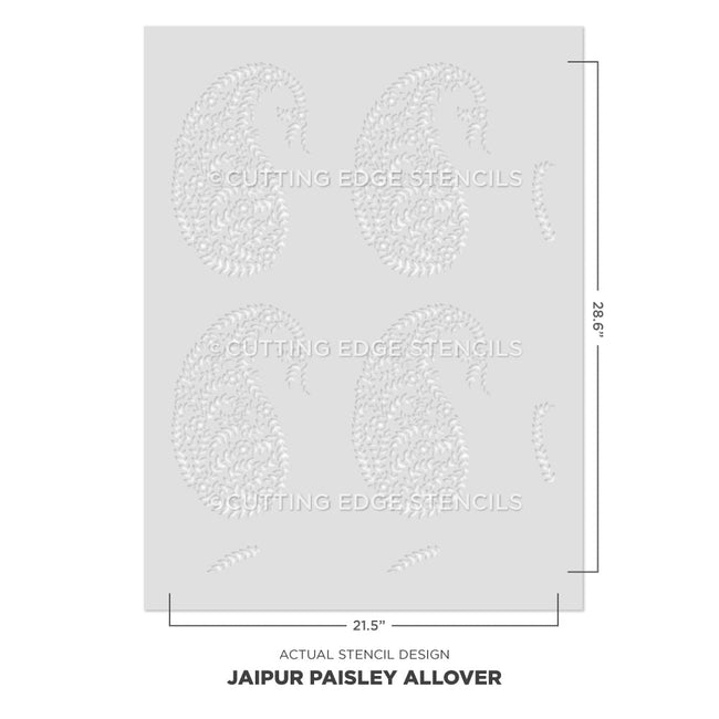 This exotic new Jaipur Paisley stencil pattern will make a stunning accent wall in any room! The traditional Paisley stencil design is also perfect for furniture, curtains, and DIY craft projects. Bring an instant exotic flare to your space with this intricate paisley stencil, which is very easy to use. Wall patterns are a great money-saving alternative to expensive wallpaper. Stenciling offers complete customization of your space with unlimited paint choices to perfectly match your decor! A great tool for DIY decorator.