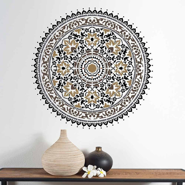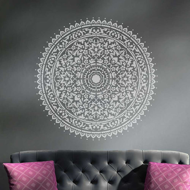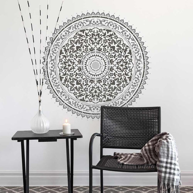 Our Kashmir Mandala Stencil is as beautiful as the region it's named after. This large stencil is a wonderful example of stylized natural elements that will bring your home decor to the next level. Our mandala stencils are reusable, unlike mandala decals which can only be used once. This mandala stencil will bring high style to any room in your home. Mandala stencils look great on walls, floors and furniture.