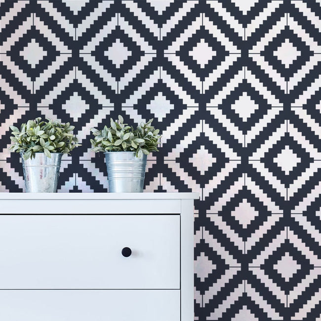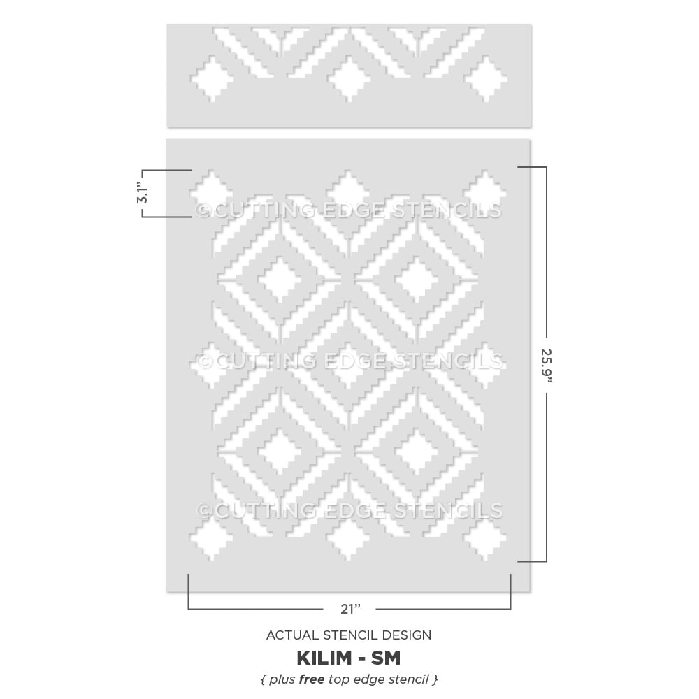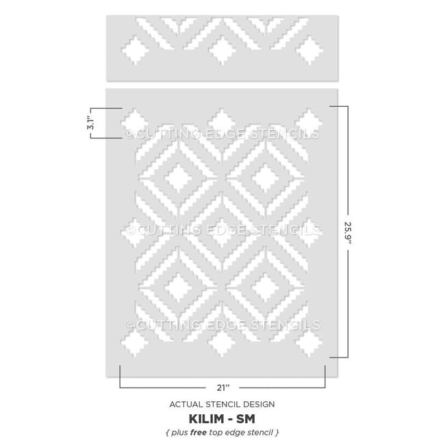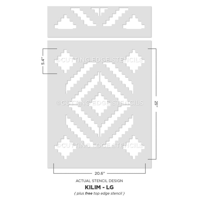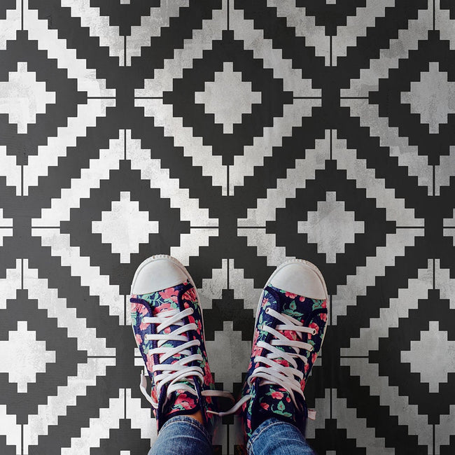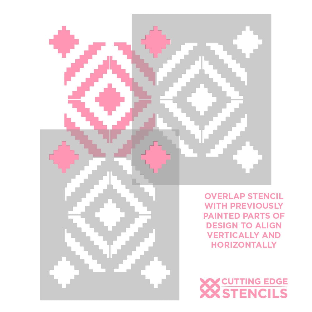 Add a decorative element in room décor with our striking Kilim Stencil! This Turkish inspired stencil design looks best when stenciled in vibrant contrasting colors! Our Kilim stencil comes in two different sizes so you can stencil any surface with ease. Large stencil is perfect for stenciling a floor. If you love Kilim rugs as much as we do, you can even stencil on thick fabric or sisal and create your own kilim inspired rug!