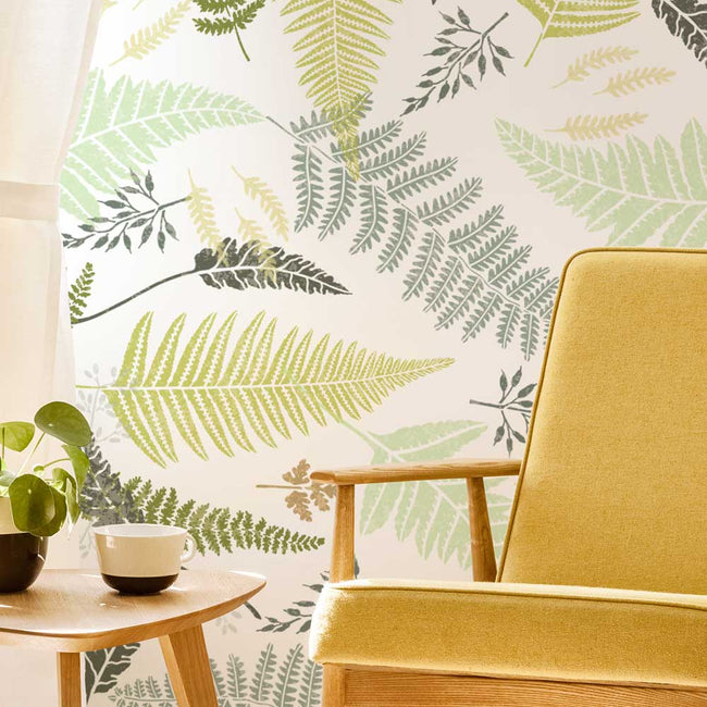 Our Ferns Wall Pattern Stencil Kit is exactly what you need to create a maximalist botanical accent wall! Simply layer these large-scale wild plant stencils in different shades of green on a dark base for a dramatic floral feature wall in your bedroom or living room. The best part about our Ferns Wall Pattern Stencil Kit is the freedom to place them wherever you want. This will automatically create a unique statement wall that brings the beauty of nature indoors. These leaf wall stencils can be used for more than just DIY wall stencil projects! Add these fern stencils on top of a canvas for beautiful DIY botanical wall art. Experience the Earth’s natural wonders without leaving your home with a DIY nature inspired furniture stenciling project.