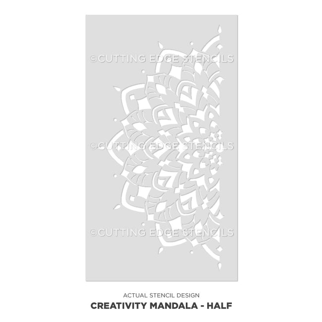 Mandala stencils keep showing in today's decorating trends, and for good reason! Mandalas fit many decorating styles, from bohemian and urban to modern farmhouse! With our beautiful Creativity mandala stencil, you can make a bold statement on any wall, floor or ceiling. Our large mandala stencils can be stenciled in one or multiple colors to match your decor. Mandala stencils are easy and fast to use despite there seeming intricacy. This stencil would be a perfect choice for a first time stenciler. Our mandalas are original hand drawn designs created by stencil designer Janna Makaeva, and exclusive to Cutting Edge Stencils.
