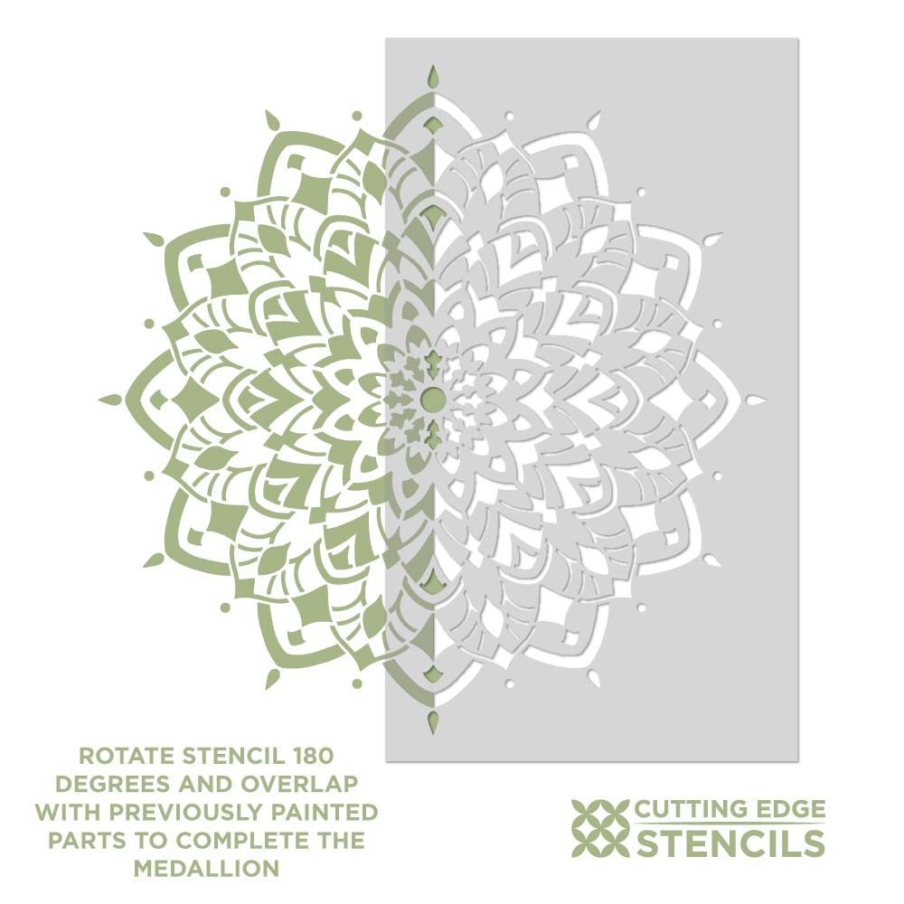 Mandala stencil designs are easy to stencil with a dense foam roller. However, for multiple colors, please use various stencil brushes. For expert stenciling tips, please watch our How-to stencil videos! You'll find them extremely helpful for your stenciling project. Even beginners get great results!