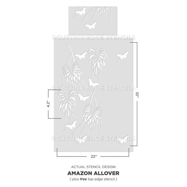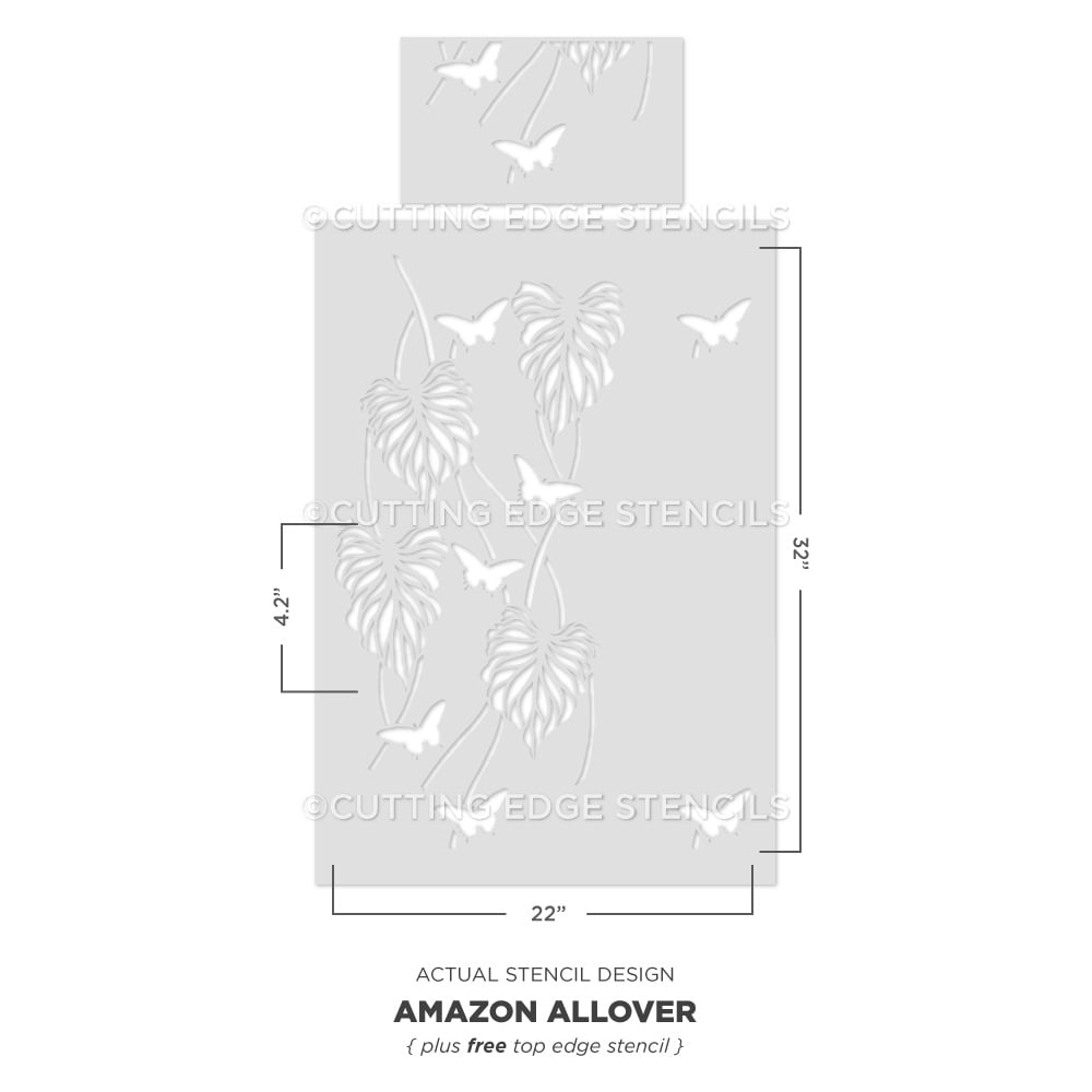 We love this organic looking stencil Amazon! This beautiful stencil design features tropical leaves and vines with butterflies, slightly reminiscent of a feeling you get in a real Amazon forest. Try it for your next DIY wall decorating project!