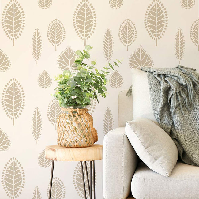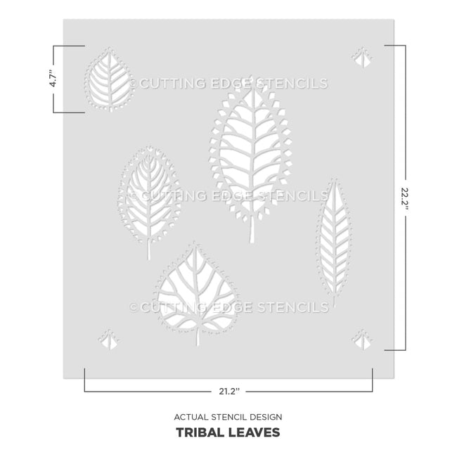 “Leaf” all your problems behind with our sweet Tribal Leaves Wall Stencil! We offer a lovely botanical stencil with detailed leaves for the perfect and easy stenciling project. You can repeat this leaf stencil pattern allover your accent wall or layer it among our other flower and branch stencils for a beautiful floral wall mural.