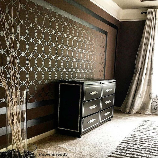 Why use expensive wallpaper when you can simply stencil your walls with this trendy Chain Link Stencil!