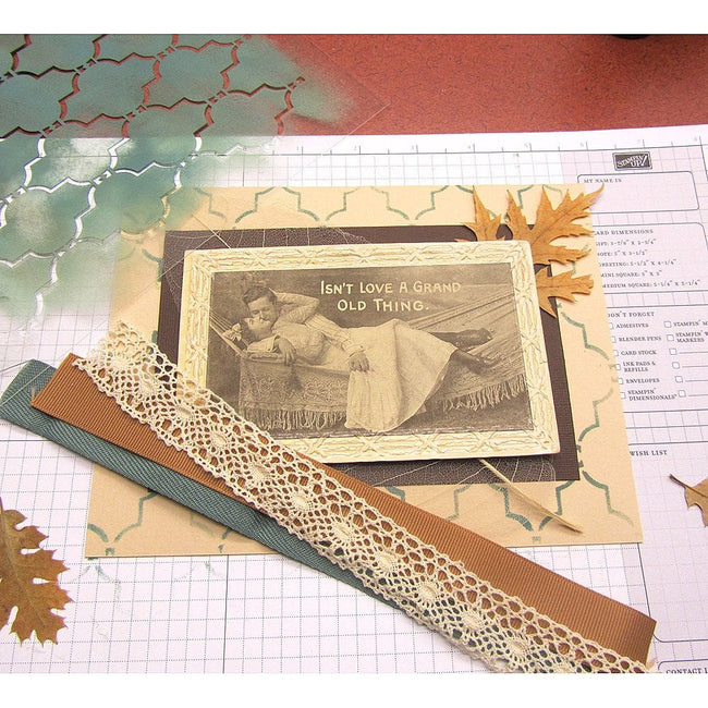 Here we simply used a mini-roller and acrylic paint to apply Marrakech trellis pattern to regular card stock for a perfect stenciled background. (see our pics). Fast and easy and ready for further embellishment!