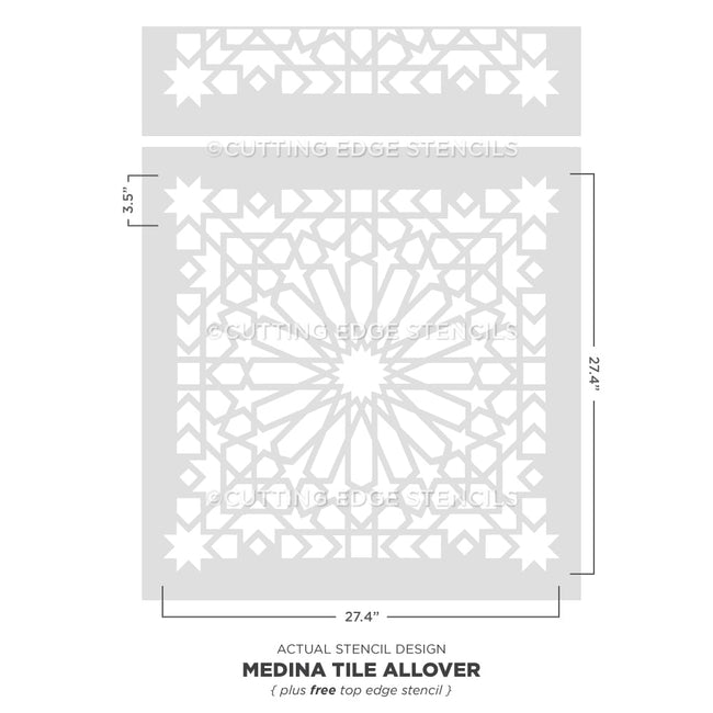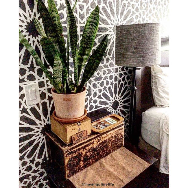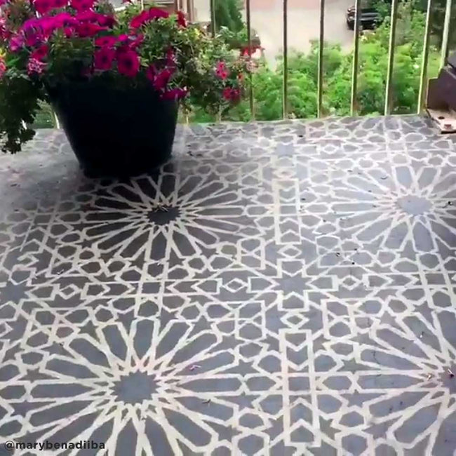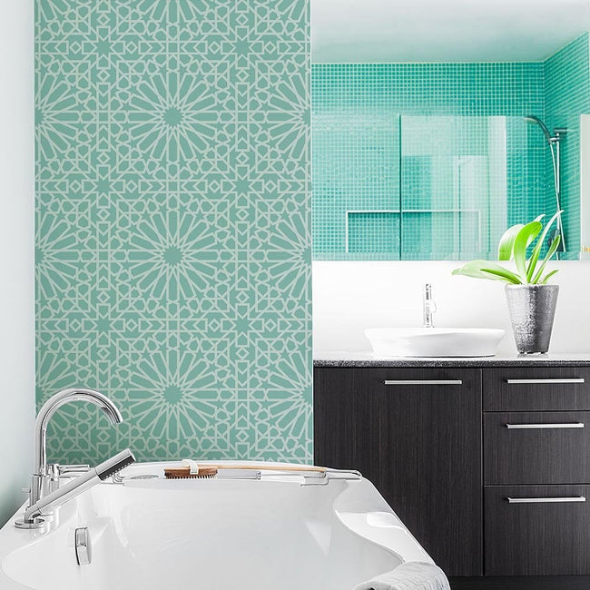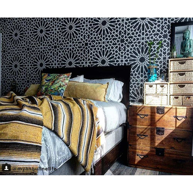Our Medina Tile stencil is another winner in our ever-growing tile stencil collection. Inspired by Moroccan designs of the past, this intricate geometric pattern is so popular today. Our tile stencils are fabulous on walls, back splashes or in place of floor cement tiles. Our tile stencil designs are super easy to use and provide big savings to more costly alternatives of wallpaper and floor tiles. You can create fabulously ornate, beautiful accent walls with this moroccan design.