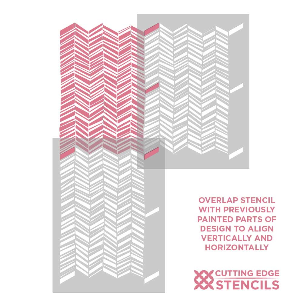 Chevron is never going out of style, it’s just getting a fresh new look! Our Mod Chervon Wall Stencil is a more modern take on our classic Chevron Geometric Stencil Pattern. This popular herringbone geometric wall stencil is perfect for stenciling an accent wall in a bedroom or in a modern nursery. Our wall stencils feature an easy and intuitive registration system for accurate alignment. This herringbone pattern is suitable for Modern Farmhouse interiors. So much better than expensive herringbone wallpaper!