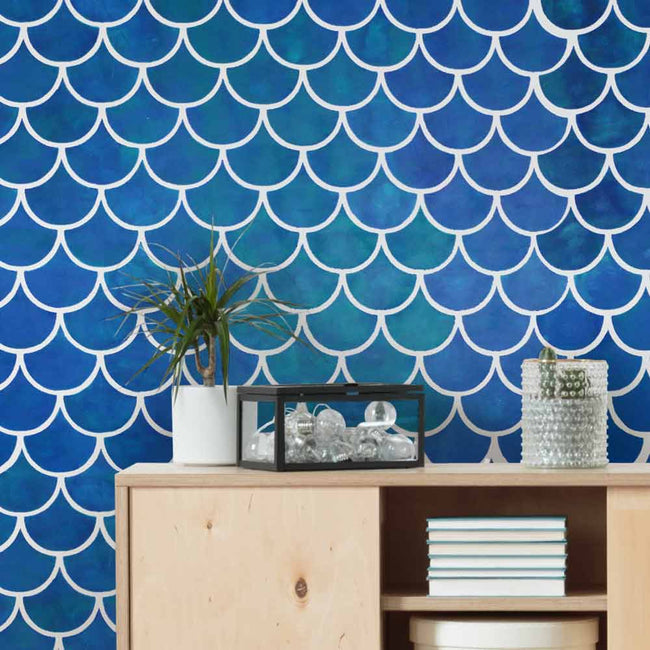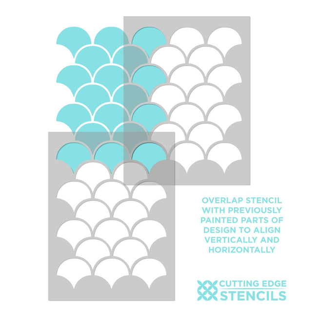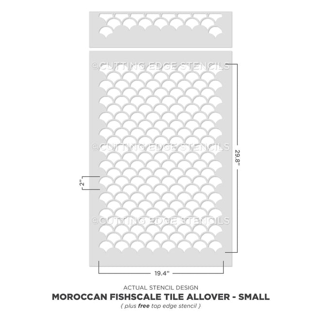 Moroccan Fishscale tile patterns are back in style! This beautiful Moroccan Fishscale Tile Stencil looks stunning on a wall or as a tile floor. Our tile stencils are the perfect money saving alternative to the popular but expensive fishscale tiles. This pattern looks great on a wall, as a backsplash, or as a trendy painted tile floor. Learn How to stencil a tile floor – it’s easy even for beginners!