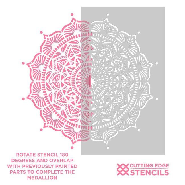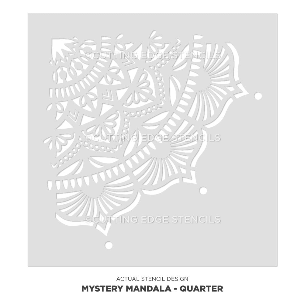 Mandala stencils are very popular for today's DIY decor. And for good reason, as mandalas fit many decorating styles! With this amazing Mystery mandala stencil, you can create a beautiful painted accent on any wall, ceiling or floor. Our original mandala stencils can be painted in one or multiple colors to match your decor. Mandala stencils are easy and fast to use despite there seeming intricacy. Perfect choice for a first time stenciling project. Our mandalas are original hand drawn designs created by stencil designer Janna Makaeva, and exclusive to Cutting Edge Stencils.