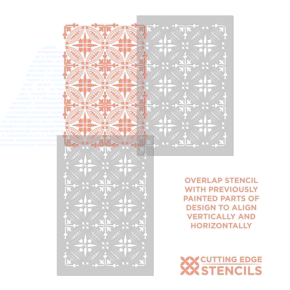 Want to learn how to stencil a damask or allover pattern? Here are the detailed illustrated step-by-step Damask/Allover Stenciling Tips.
