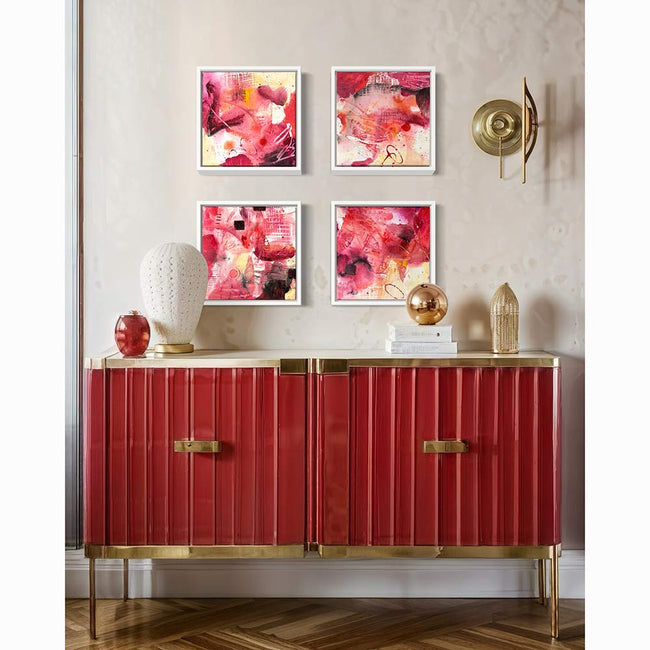"Crimson discoveries" original acrylic abstract paintings, set of 4
