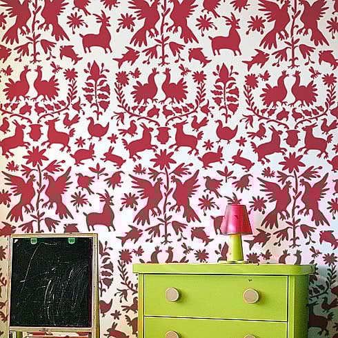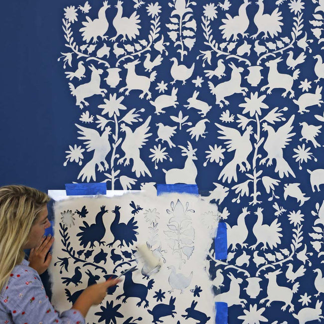 We are in love with our Otomi stencil pattern! Inspired by traditional Mexican tribal textiles, this amazing ethnic pattern works great in a nursery, kids room, bedroom or on a headboard or rug. Check out the details of this lovely design, a joyful celebration of life and all its beautiful animals. Why use expensive wallpaper when you can stencil your walls? Reusable stencils save you money and make you feel proud of your creation. Your friends are not going to believe you stenciled this yourself! This ethnic allover pattern is perfect for DIY decor.