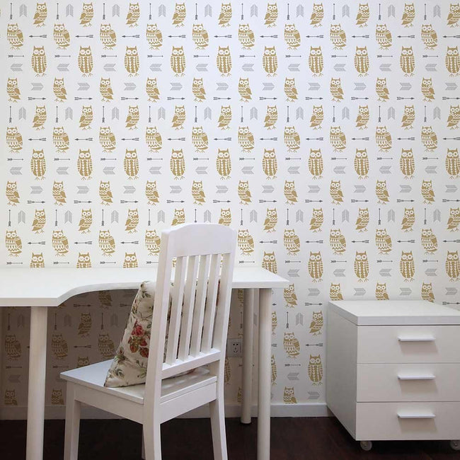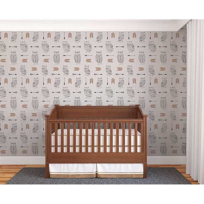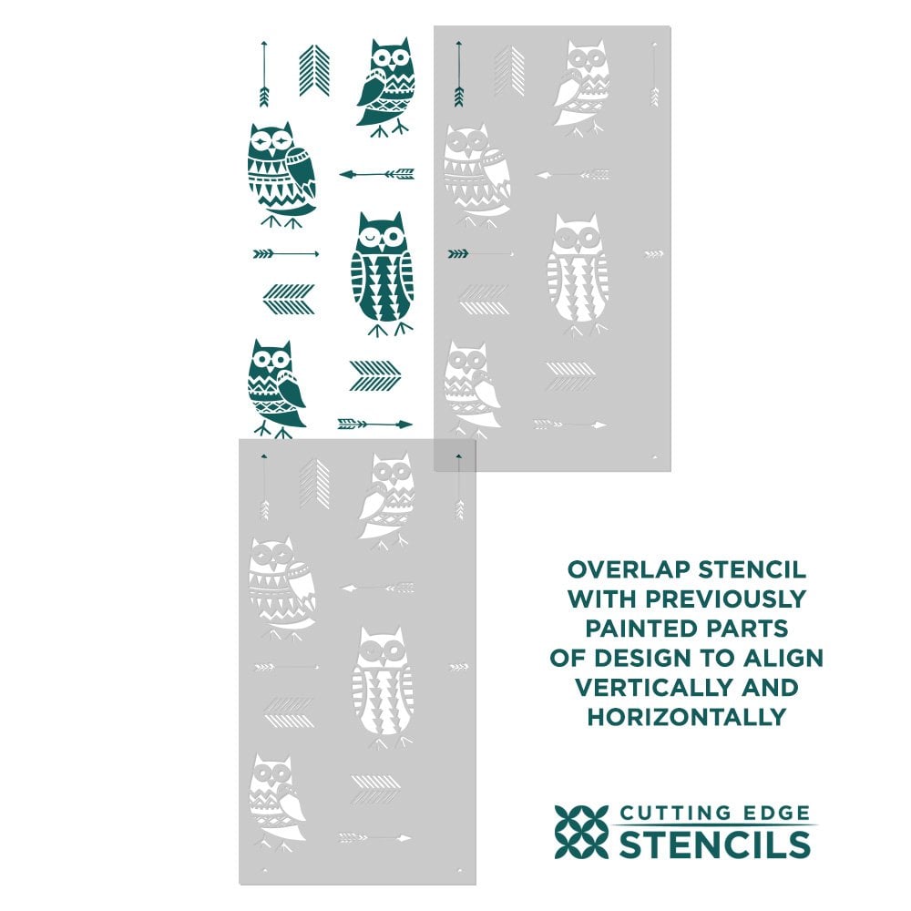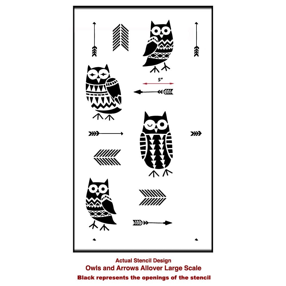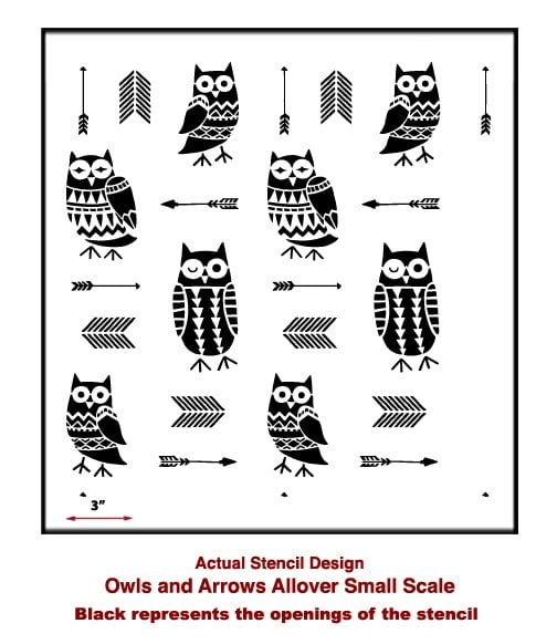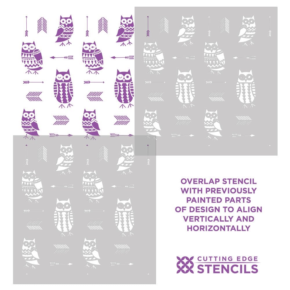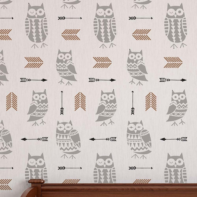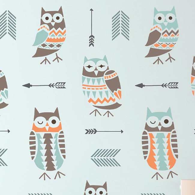 This awesome stencil combines some of trendiest designs today! Our Owls and Arrows Allover Stencil is fun, stylized and tribal all in one! Use this stencil pattern to create the coolest nursery in town!This owl stencil pattern is perfect for a woodland theme nursery, or the western-tribal styled kids playroom.