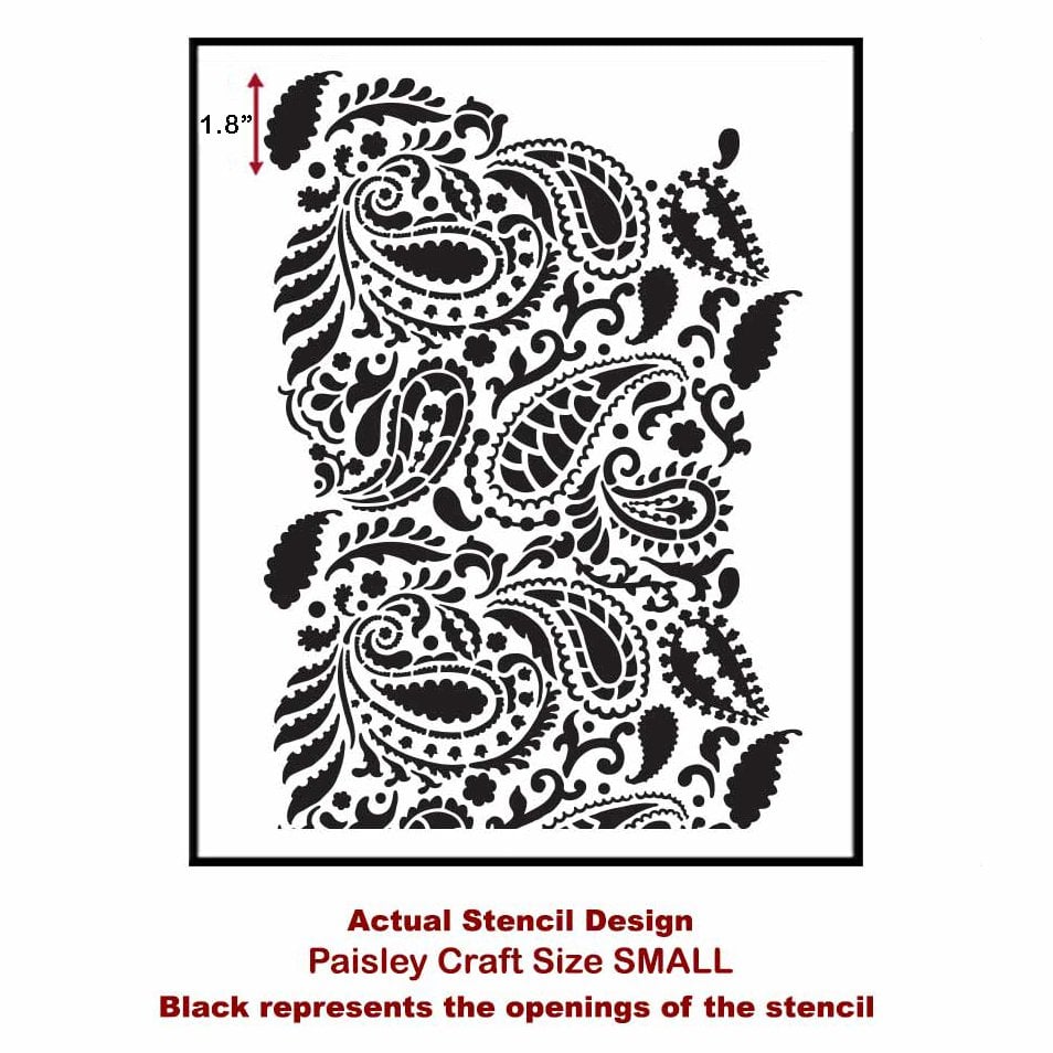 This gorgeous, indian-inspired Paisley craft pattern stencil can be used in so many projects! Paint the front of a dresser, recycle a garage sale table, or make your own paisley linens. Check out the level of detail! Reusable stencils save you money and make you feel proud of your creation. Your friends are not going to believe you stenciled this yourself! This allover craft pattern is perfect for DIY decor. Registration is built into design for ease of aligning. This beautiful pattern can be used on a table top or across the front of dresser drawers. Stencil a large canvas with this design and use it as the background for other pieces of art or family photos. Great for traditional or contemporary decor - just play with your color combination!