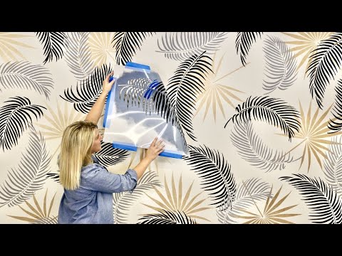 If you want to standardize your wall pattern, make sure to layout and mark your walls with small pieces of tape or chalk, and use our Clip-on Stencil Level to keep the designs vertical. We recommend using stencil spray adhesive with this palm leaf design, to achieve a crisp look.