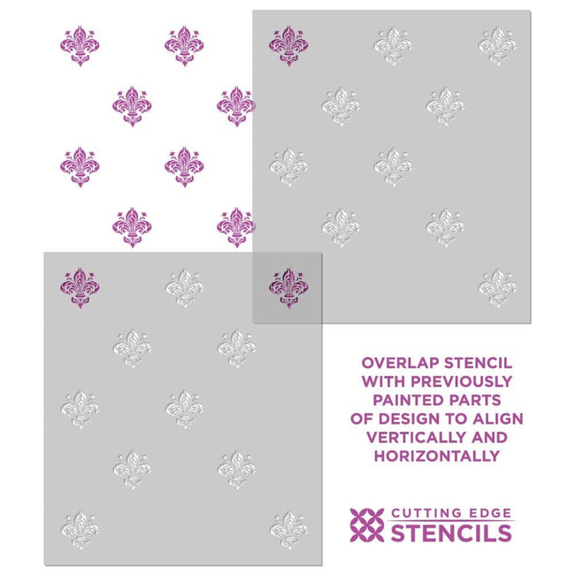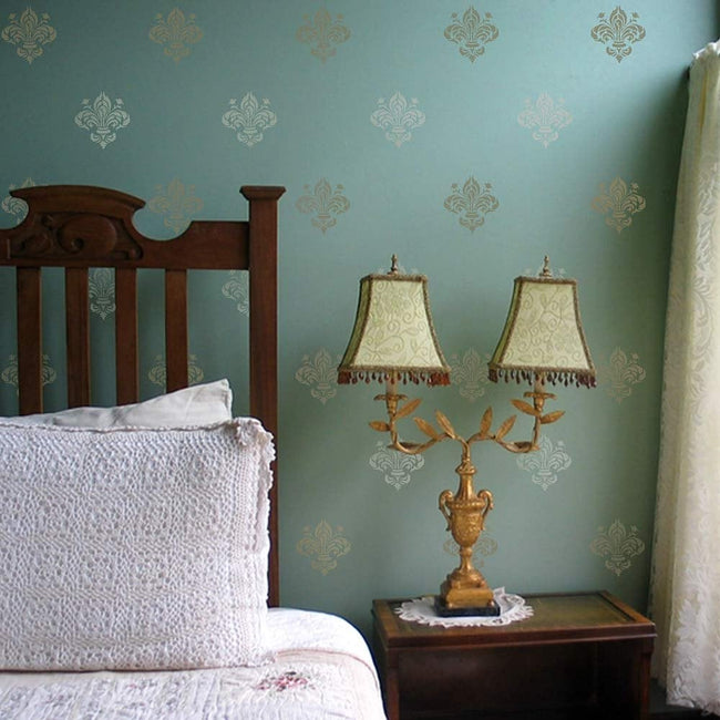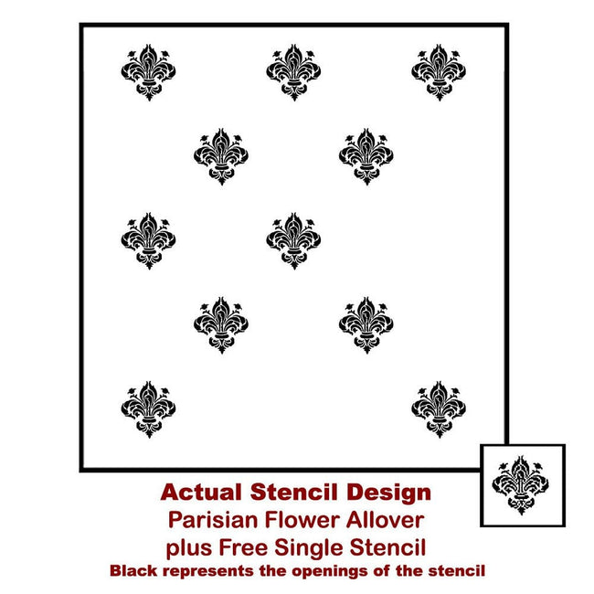 The Parisian Flower Allover stencil pattern puts a modern twist on a classic French Fleur de Lys design. Add a bit of French flair to your DIY decorating projects using this wall stencil. Decorate a feature wall, accentuate painted furniture, or embellish your curtains. The possibilities are endless but guaranteed to be tres chic. This is a large stencil, designed to help you to quickly cover the wall with this elegant wall pattern.