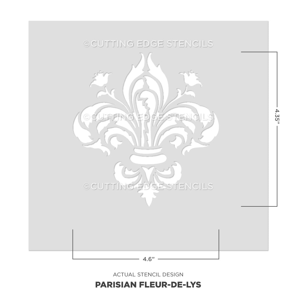 The Parisian Fleur-de-lys stencil puts a modern twist on a classic French Fleur de Lys design. Add a bit of French flair to your DIY decorating projects using this wall stencil. Decorate a feature wall, accentuate painted furniture, or embellish your curtains. The possibilities are endless but guaranteed to be tres chic!