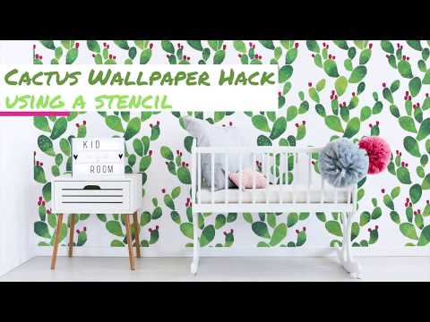 Prickly Pear Cactus stencil wallpaper nursery cactuses
