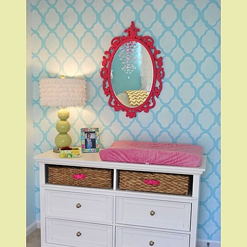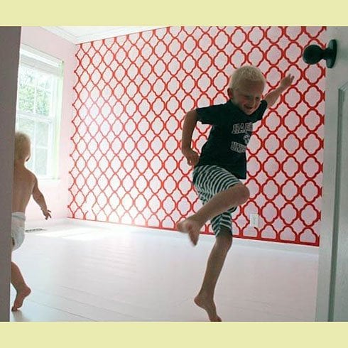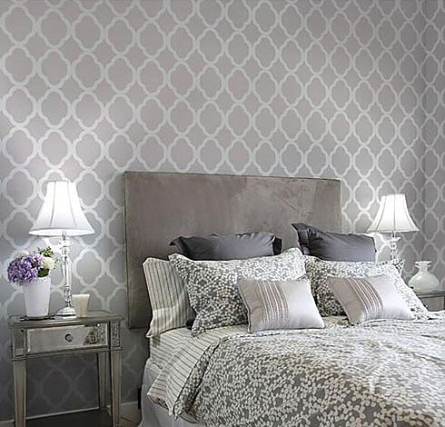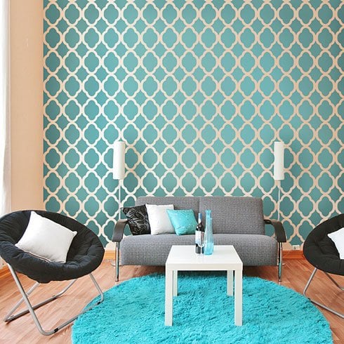 This fashionable Moroccan inspired stencil pattern will look stunning on your accent wall. So much better than wallpaper. You can also stencil this pattern on curtains, rugs and furniture!