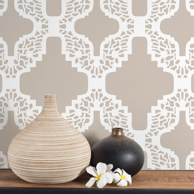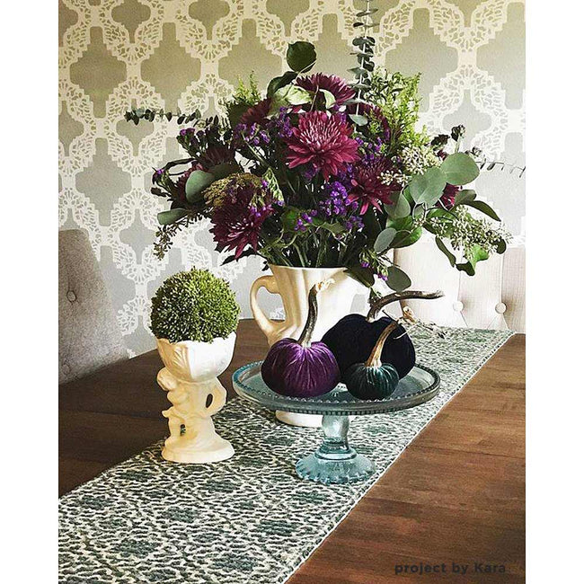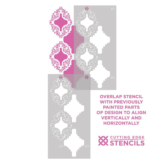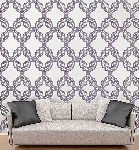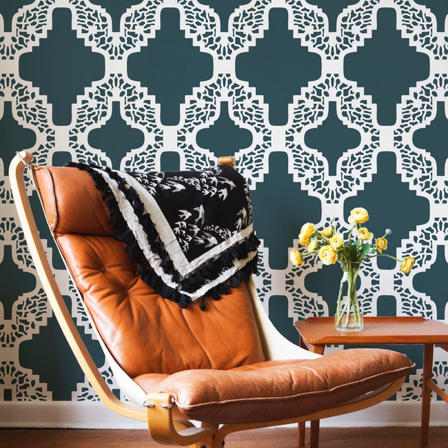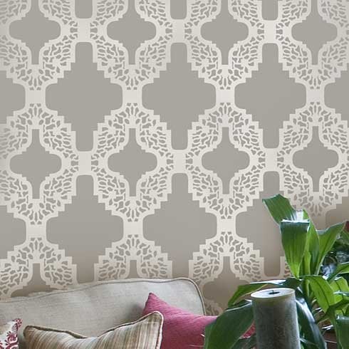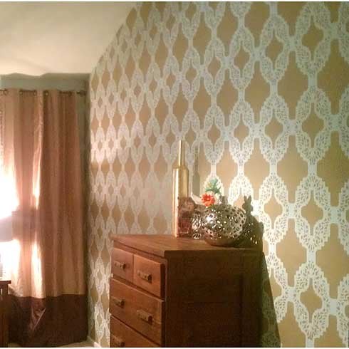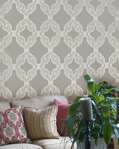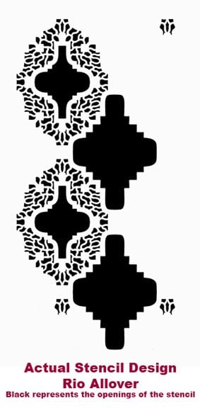 A harmonious mix of tribal and classical designs, it will look stunning stenciled on your accent wall. Easy registration system, simply line up your stencil with the design of previously painted print, check for level and continue. This gives you a seamless "wallpaper" look. While prior stenciling experience is recommended for allover patterns, even beginner stencilers get great results! This design is recommended for feature/accent wall and also works for furniture and fabric embellishment.
