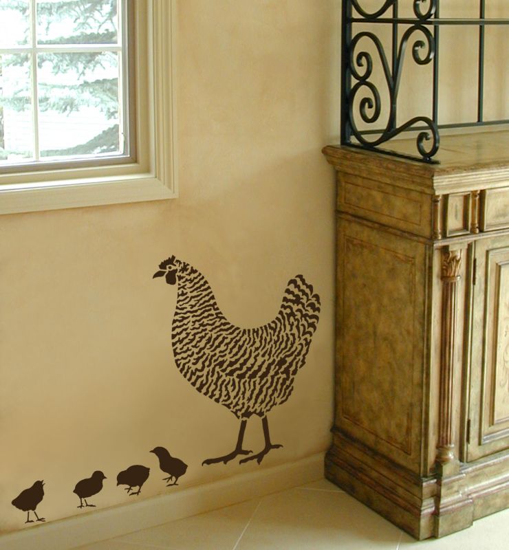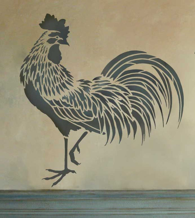 This Rooster Stencil is great for kitchens, traditional country decor, kids rooms and of course the Chicken Coop. Very easy single overlay stencil. We also have a beautiful Dominique Chicken stencil and baby chicks stencils to keep him company, so please check them out too!
