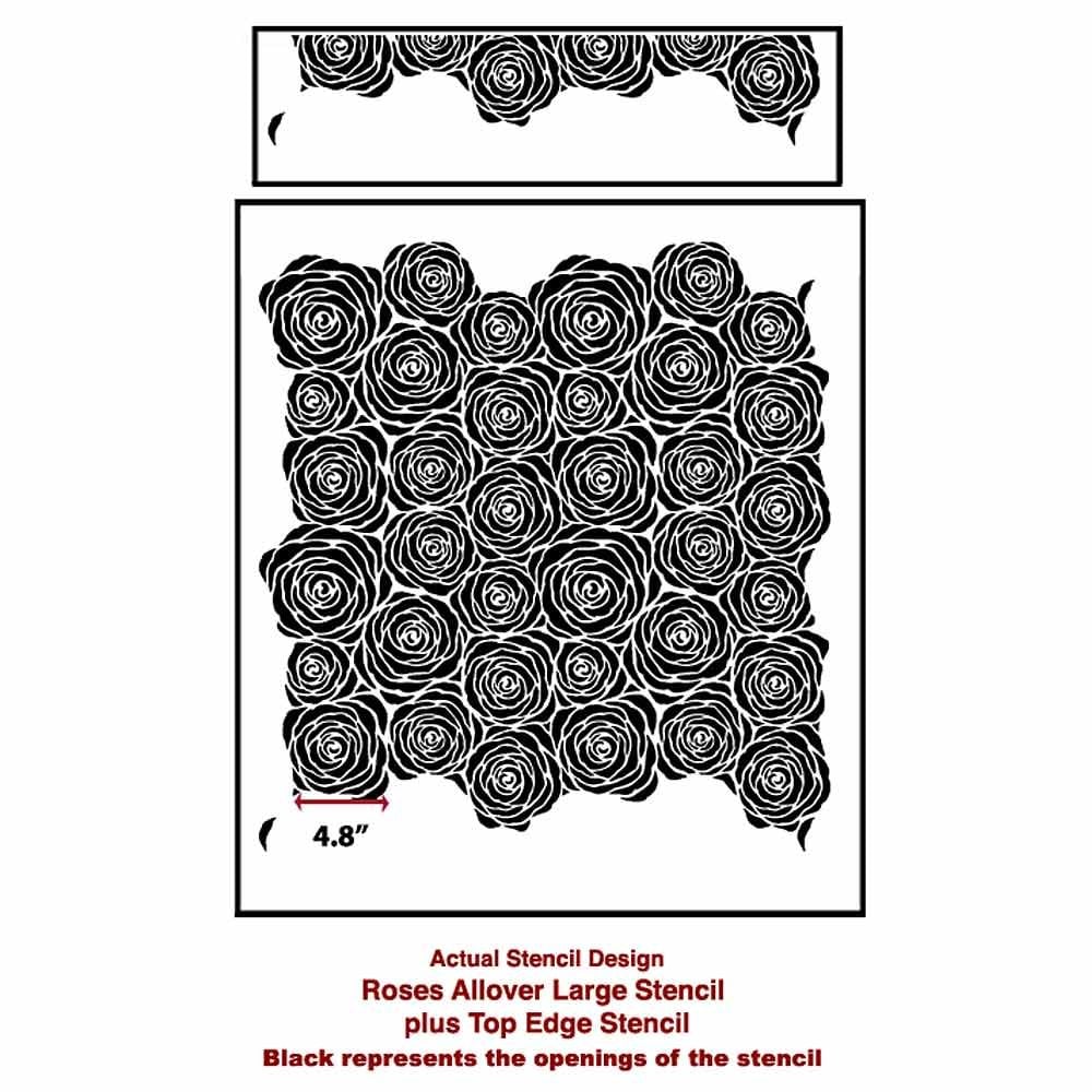 --Roses are red, or whatever color you want to stencil them! Our Roses Allover Stencil looks fantastic in any color. This classic stencil pattern looks great above a chair rail in the dining room, as an accent wall or even stenciled on the floor or ceiling. A natural beauty! Perfect choice for the little girl's nursery!