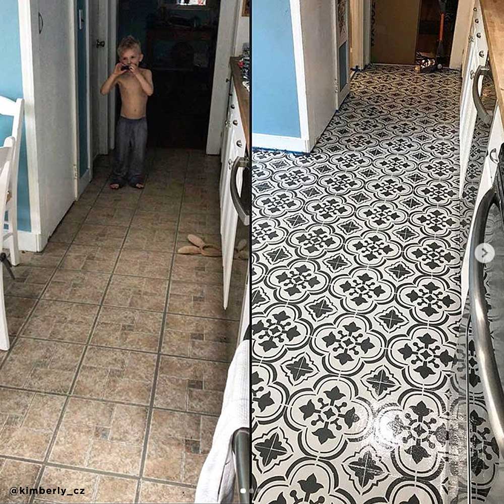 Our Santa Ana Tile stencil design is another fabulous design in our growing tile stencil collection. Inspired and designed based on Spanish and Portuguese tile patterns of the past that are so popular today. Our tile stencils look great on walls, kitchen backsplashes or instead of cement floor tiles. Our tile stencil designs are super easy to use and provide big savings to more costly alternatives of wallpaper and floor tiles. Get a Pinterest-worthy tile floor for a fraction of the price of real tile!