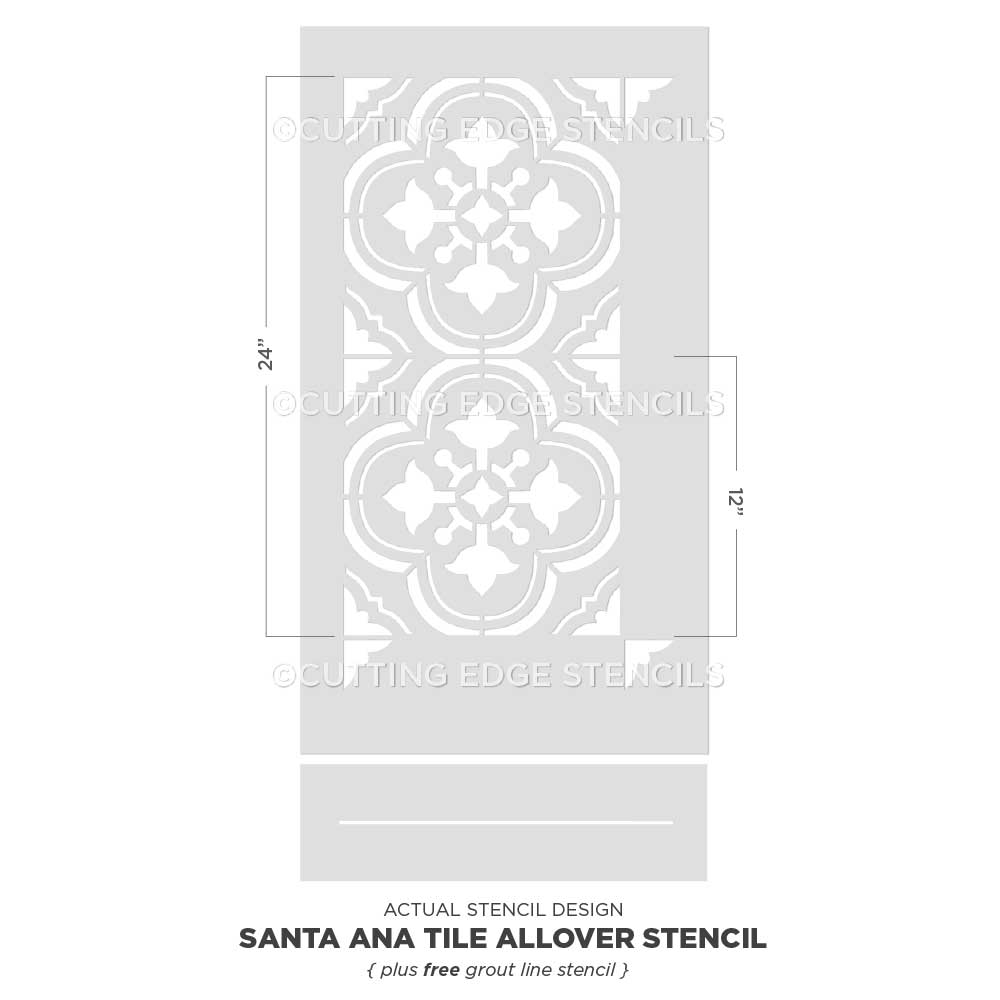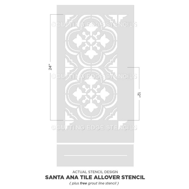 Our Santa Ana Tile stencil design is another fabulous design in our growing tile stencil collection. Inspired and designed based on Spanish and Portuguese tile patterns of the past that are so popular today. Our tile stencils look great on walls, kitchen backsplashes or instead of cement floor tiles. Our tile stencil designs are super easy to use and provide big savings to more costly alternatives of wallpaper and floor tiles. Get a Pinterest-worthy tile floor for a fraction of the price of real tile!