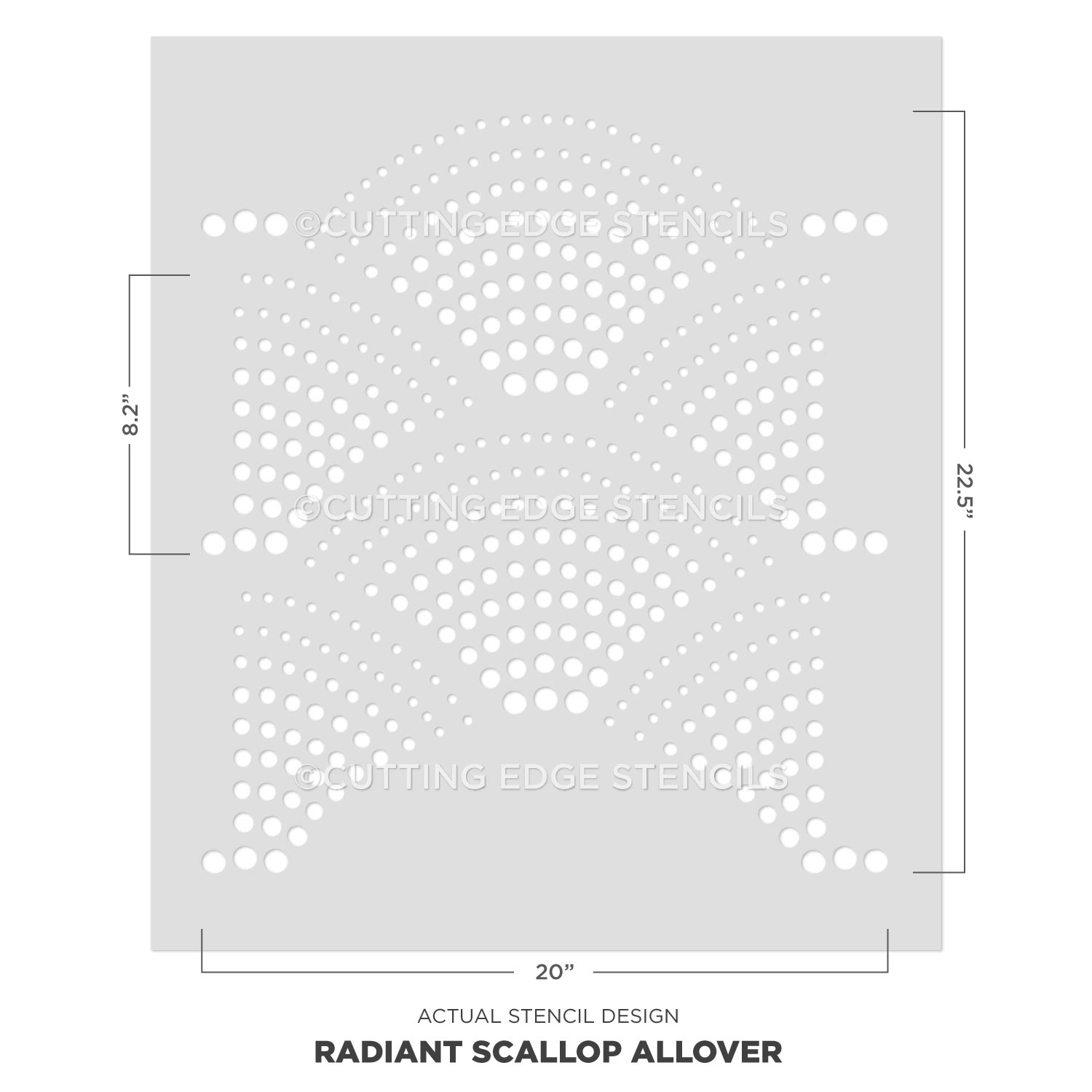 We also offer this trendy scallop fan pattern in smaller sizes for furniture painting and craft stencil projects. Please check out our Radiant Scallop Furniture stencil.
