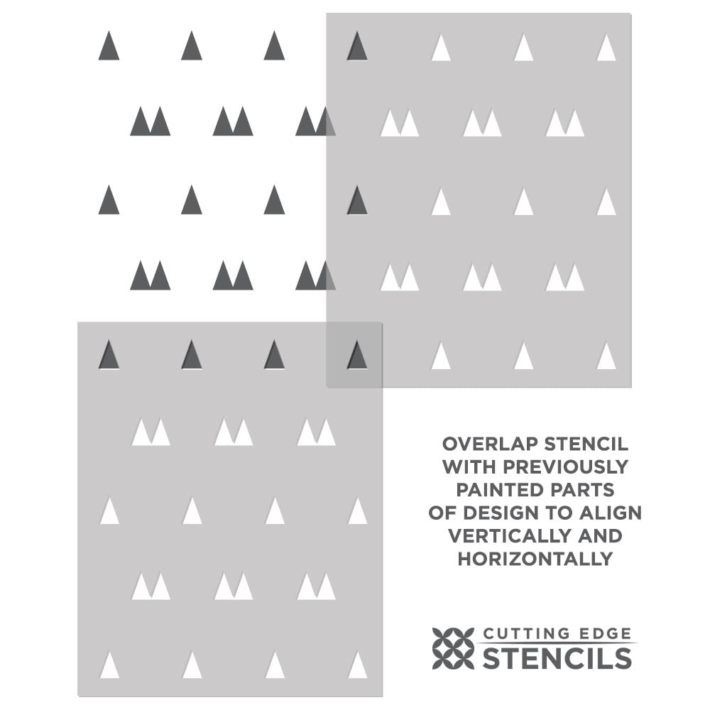 This stencil comes with an additional FREE single triangle stencil to help you to fill the gaps close to the ceiling line and in the corners.